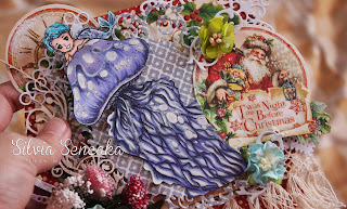 Hello all! Today i want to share with you all another new release from Aurora Wings named Jellyfish Adventure. It is a little mermaid boy riding a jellyfish. Super cute and i love him so much!! I am making the card shape using aquarium template from Dutch Dobadoo. and cover it using Graphic45 paper Christmas Twas Night Before Christmas. Here it is